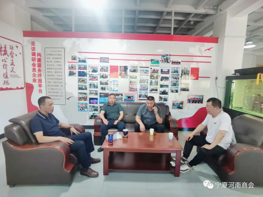为进一步提升我商会的服务水平,加强与其他商会之间的联系,互通有无,学习交流办会经验,提高商会的凝聚力,8月9日上午,值班会长张金刚、秘书长董红岩及商会秘书处一行来到宁夏湖北商会进行交流学习。