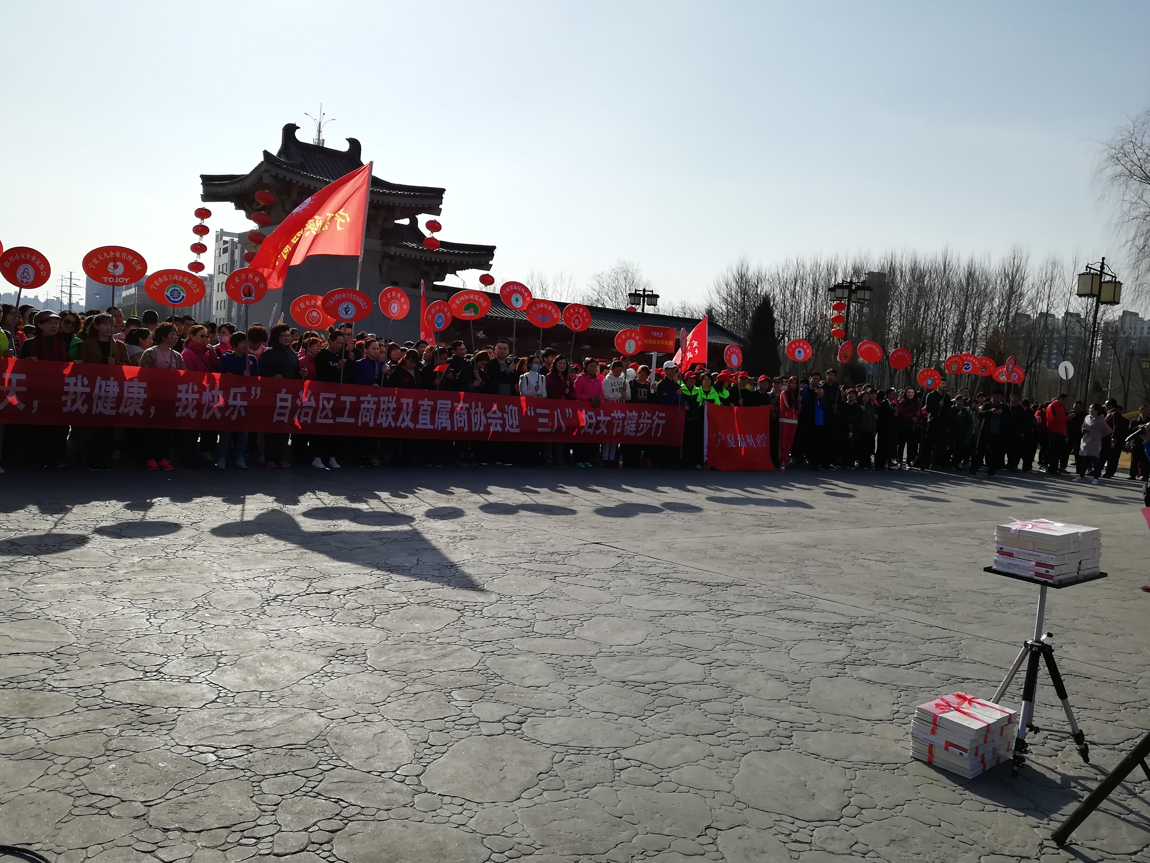 为庆祝"三八"国际妇女节,2018年3月6日,自治区工商联直属会员单位党委、直属会员单位妇委会联合各直属商协会党组织、妇委会在银川市海宝公园举办"相约春天,我健康,我快乐"健步行活动。