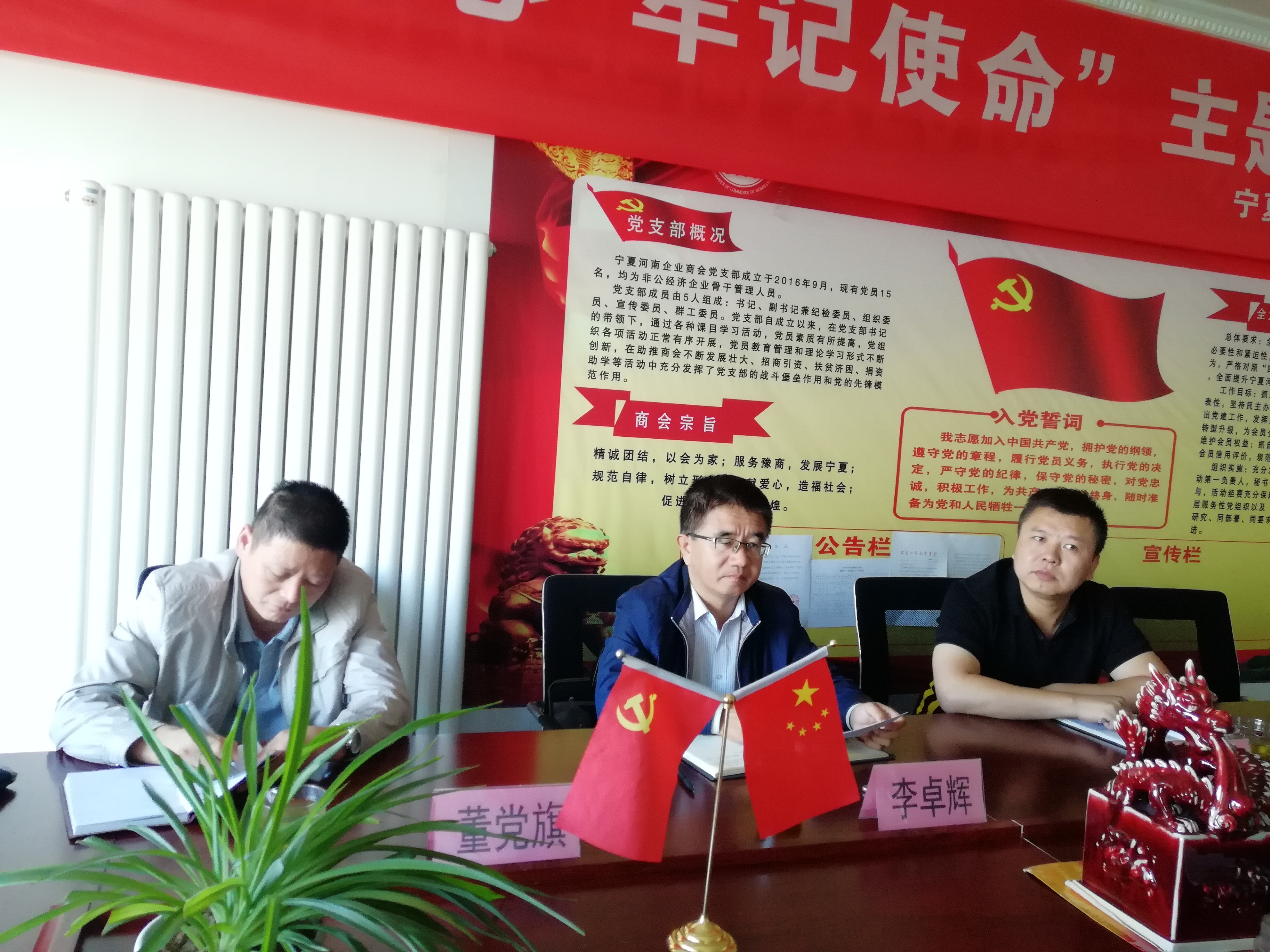 2019年9月26日上午,自治区党委组织部三处李卓辉处长、董党旗及自治区商务厅社会组织党委闫涛主任一行来宁夏河南企业商会党支部针对第二批学习习近平“不忘初心,牢记使命”活动进行督导调研。
