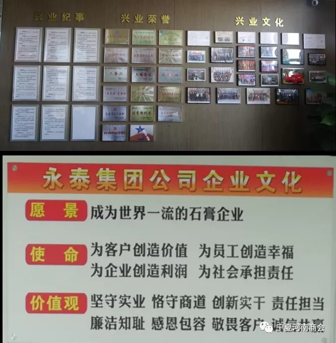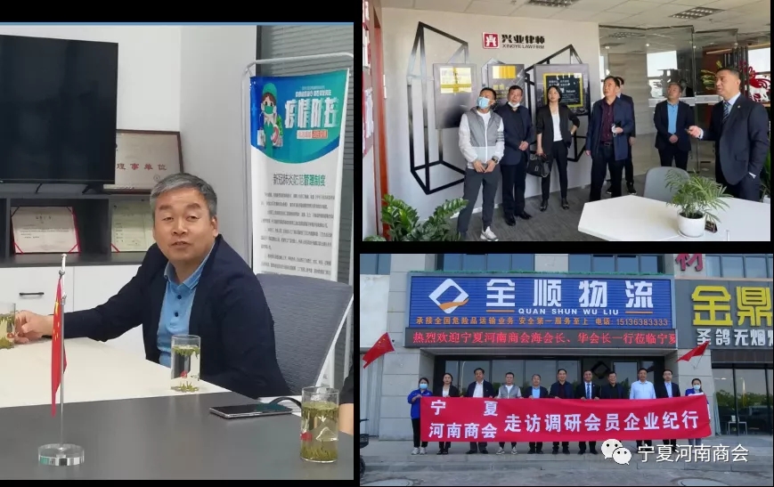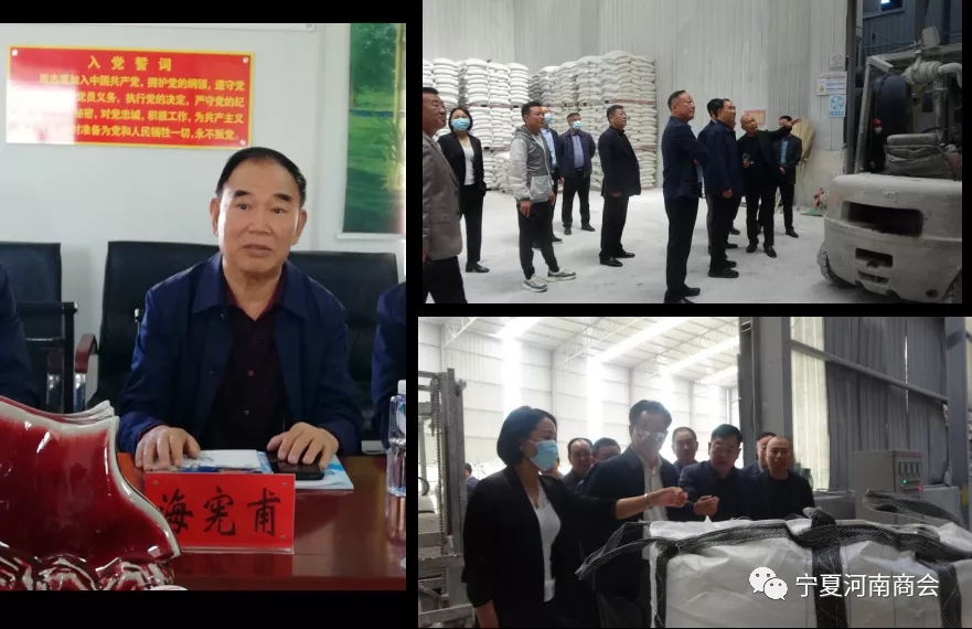 2021年5月16日—17日,宁夏河南商会核心领导小组一行九人分别到盐池县工业园区青山功能区的宁夏盐池县永泰石膏有限公司、宁东的宁夏全顺物流有限公司、宁夏兴业(灵武)律师事务所、永宁望远工业园区宁夏欧韵新型材料有限公司走访调研。所到之处受到了业主们的热烈欢迎和热情款待,通过听取工作汇报、参观生产线、座谈交流等,对四家会员企业的可观现状、市场定位、价值潜力、发展目标有了初步的了解认知,给我的启示是:不看不知道,一看很自豪。概括他们成功的经验有四: