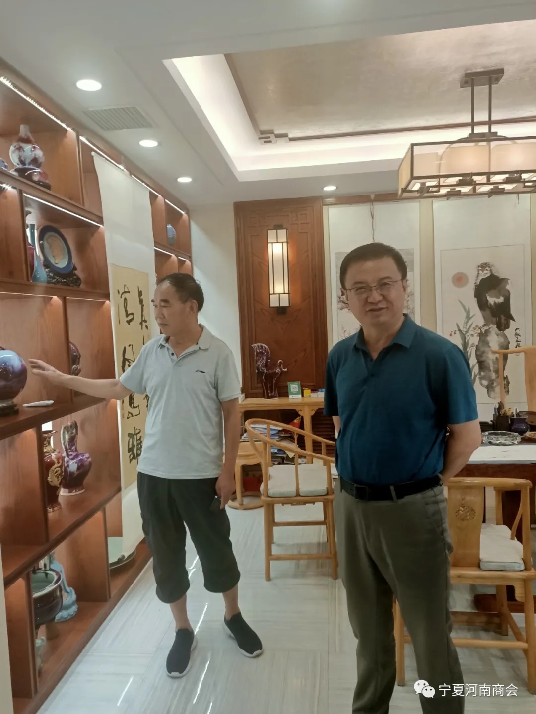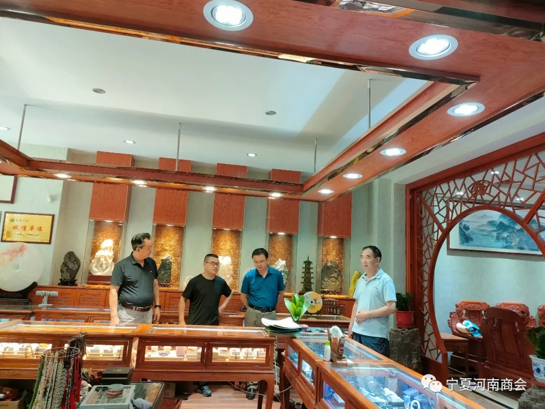 7月13日下午,烈日炎炎。自治区工商联何晓勇主席、范瑜副主席等一行,不畏酷暑,深入宁夏河南商会会员企业——燕宝钢材市场和文化城昌旺玉坊走访调研,详细了解市场状况、产品价格、营销收入、员工福利等情况。然后在宁夏河南商会召开座谈会。在听取汇报和发言后,何主席作了重要指示。