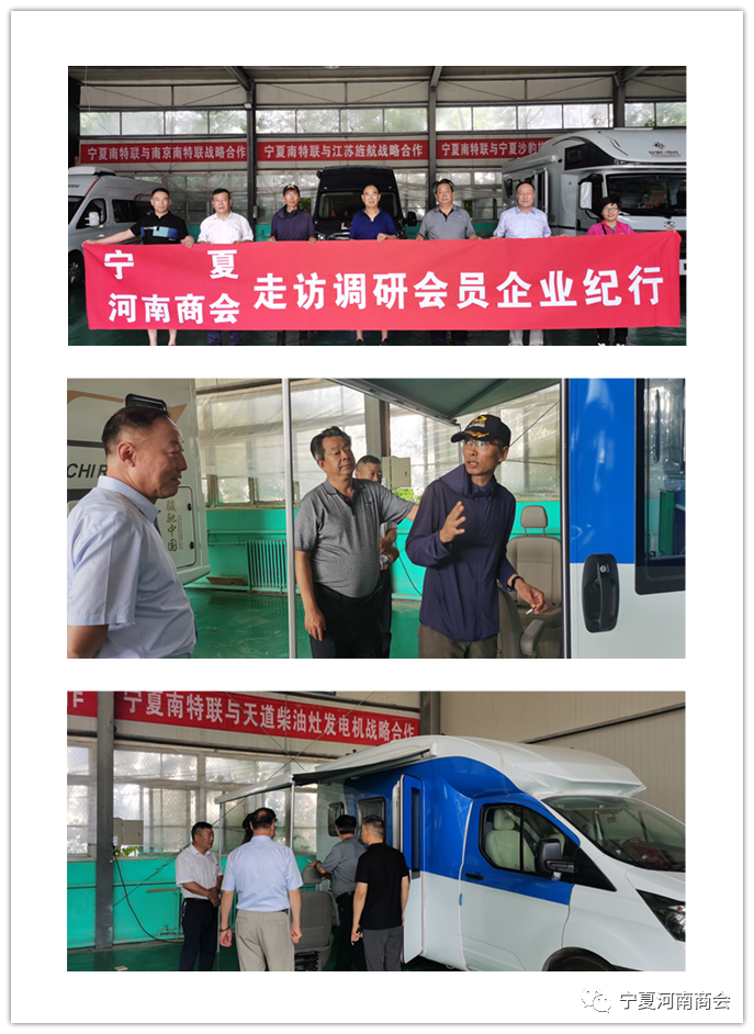 2021年7月24日,宁夏河南商会名誉会长海宪甫、党支部书记张金刚、执行会长秦东方、副理事长时鑫亮以及秘书长陈三同一行分别到宁夏南特联房车装备有限公司和宁夏丰源办公家具制造有限公司走访调研。