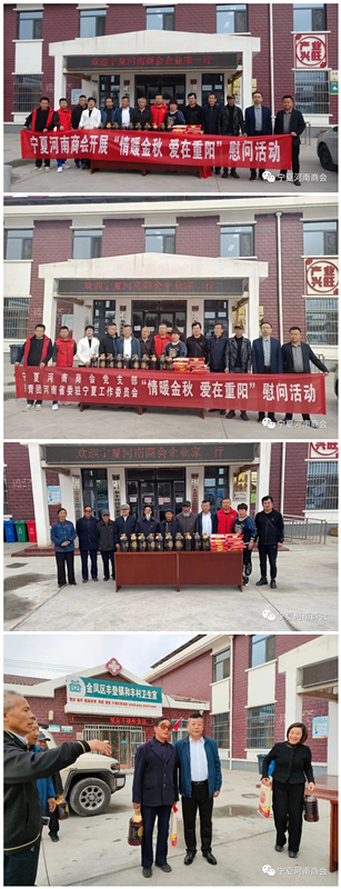 金秋十月、丹桂飘香,岁岁重阳、今又重阳,在九九重阳节来临之际,为弘扬中华民族“尊老、敬老、爱老、助老”的传统美德, 宁夏河南商会、宁夏河南商会党支部、共青团河南省委驻宁团工委联合宁夏太阳能能源协会、宁夏机动车鉴定评估行业协会、宁夏朔方律师事务所一行携慰问品走访慰问丰登镇和丰村退休老党员、老干部,共同开展“情暖金秋、爱在重阳”为主题的重阳节慰问、登高活动。为他们送去了节日的问候和美好祝福。