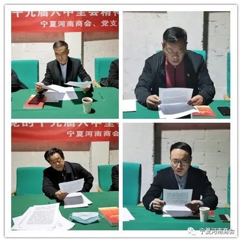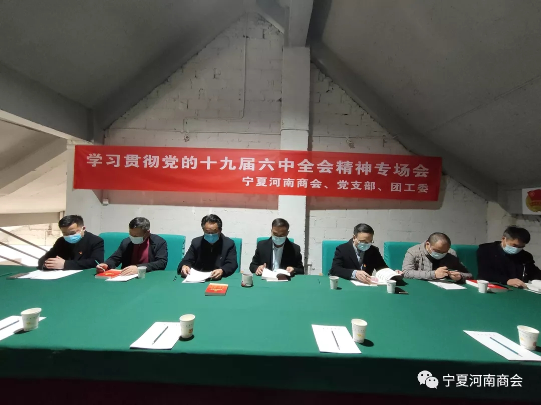 12月3日,宁夏河南商会、商会党支部、团工委组织党员、团员和党团积极分子共17名会员,集中学习了党的十九届六中全会精神。