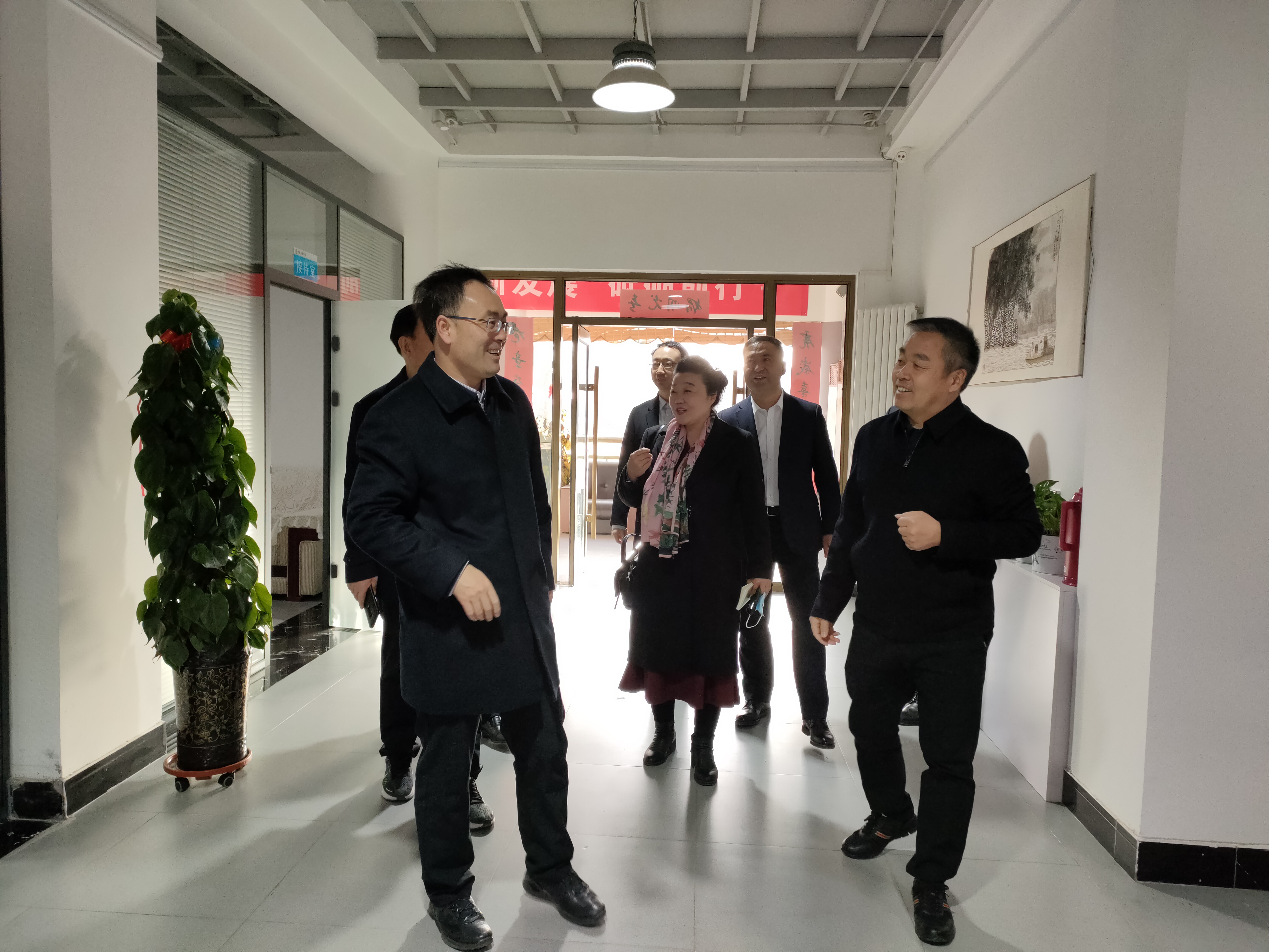 调研组领导一行参观了商会办公场所,查看了商会各项制度上墙情况,通过荣誉墙、党建室了解商会和商会党组织全面建设取得的成绩和荣誉。