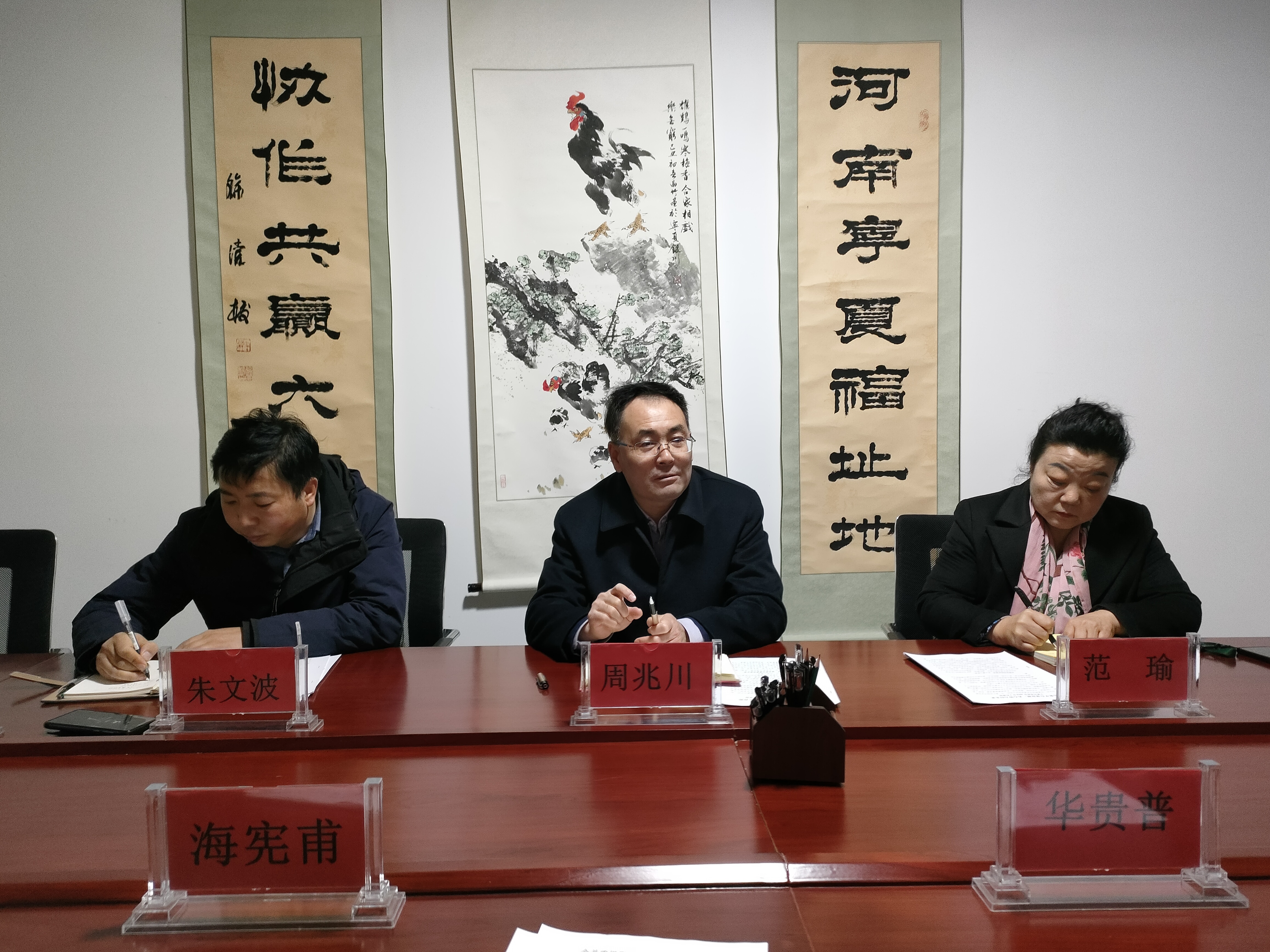 听取商会工作汇报后,周兆川书记指出:宁夏河南商去年合并重组后,工作可圈可点,活动有声有色,组织架构健全;成绩可喜又来之不易,关键是两位会长顾大局,有大爱,商会工作成效显著,很受启发。希望下一步你们再接再厉。一是按照自治区非公企业和社会组织党支部规范化建设的意见,加强党组织建设,严格落实“三会一课”,规范化、经常化,按照“四好”商会标准严格落到实处。二是在教育引领上更有成效。以深入学习贯彻习近平新时代中国特色社会主义思想作为主题,引领会员企业感党恩,听党话,跟党走。通过学习习近平总书记在民营企业家座谈会的上讲话,更加自觉的捍卫“两个确立”、增强“四个意识”、 做到“两个维护”。三是进一步加强队伍建设。服务好会员企业要开展各类有针对性、有质量的培训活动,提升服务质量;收集各类信息,做好信息输入、输出工作;改进服务方式,让服务更便捷有效。