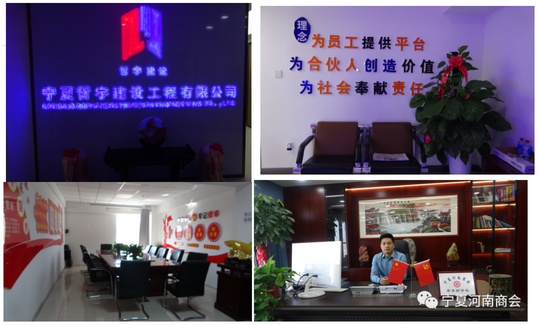 第二站,我们来到位于兴庆区新华东街650号隆鑫苑A2号楼A座7层702室的宁夏哲宇建设工程有限公司,公司董事长马军民介绍道:宁夏哲宇建设工程有限公司成立于2015年8月,注册资金8000万元,是一家集建筑工程、市政公用工程、机电工程、建筑装饰装修工程、钢结构工程、防腐保温工程、建筑机电安装工程、城市及道路照明工程、消防设施工程、环保工程等为一体的施工总承包企业。公司有员工73人,其中高级工程师1人、中级工程师7人,二级建造师5人,预算员、施工员、技术员、安全员、质检员等8人。