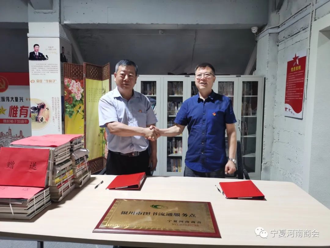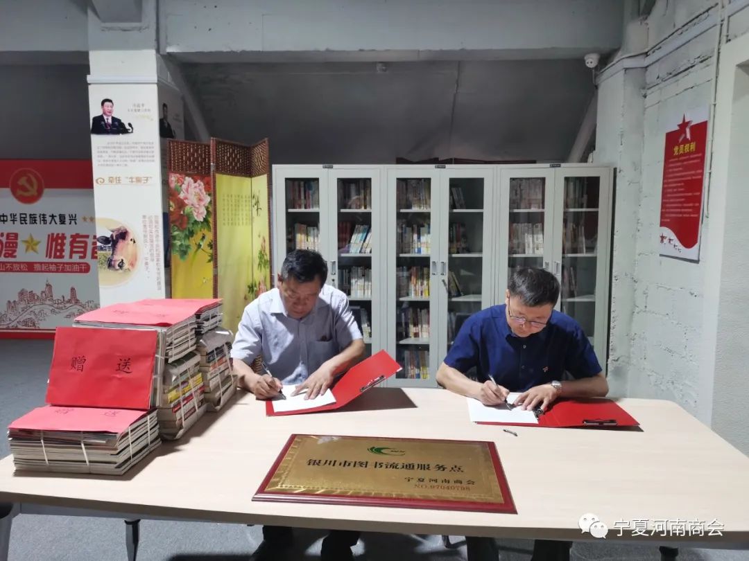 2022年6月15日上午,银川市图书馆NO:97040798银川市图书流通服务点正式入驻宁夏河南商会,并举行了签约仪式。