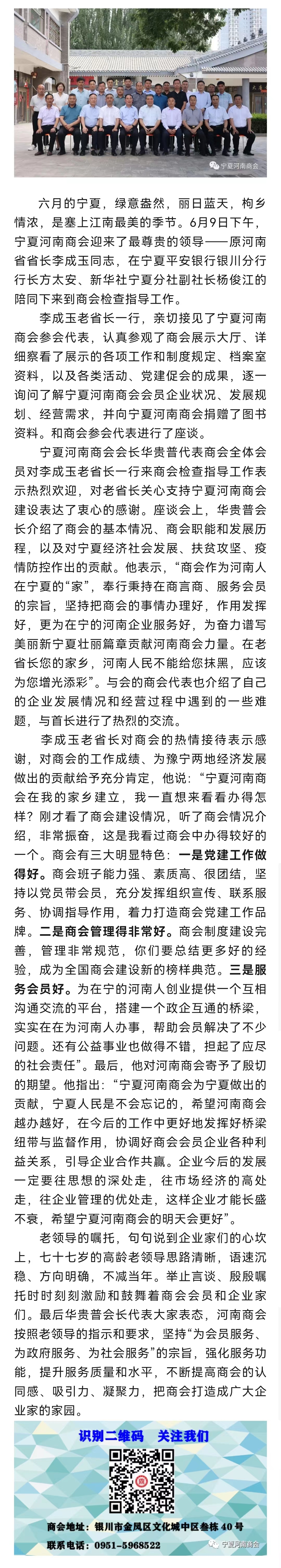 河南省政府原省长李成玉到宁夏河南商会检查指导工作