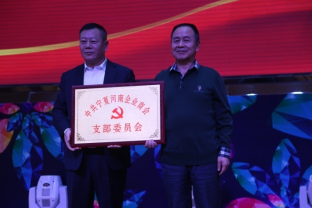 自治区商务厅社会组织党委辛群宝书记颁授中共宁夏河南企业商会支部委员会牌。