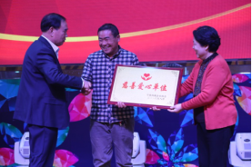 豫商联合会王玉英副会长、宁夏河南企业商会海宪甫会长为宁夏河南企业商会常务副会长、宁夏良善面条哥食品有限公司董事长郭良山授“慈善爱心单位”牌。(郭良山事迹:是首届宁夏慈善人物之一、第四届自治区道德模范、最美银川人、第二届兴庆区“助人为乐”道德模范。自己靠卖手擀面条捐助40余位贫困学生,为慈善事业做出了宝贵的贡献)!