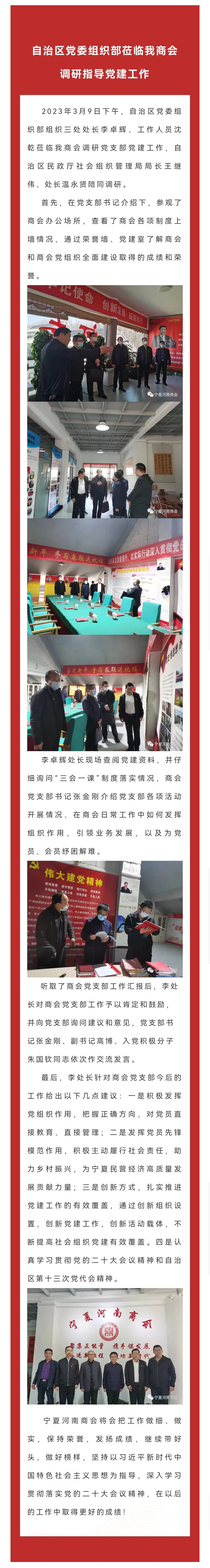 自治区党委组织部莅临我商会调研指导党建工作